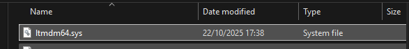 The service uses a driver called ltmdm64.sys which resides in the \System32\DriverStore\FileRepository directory.