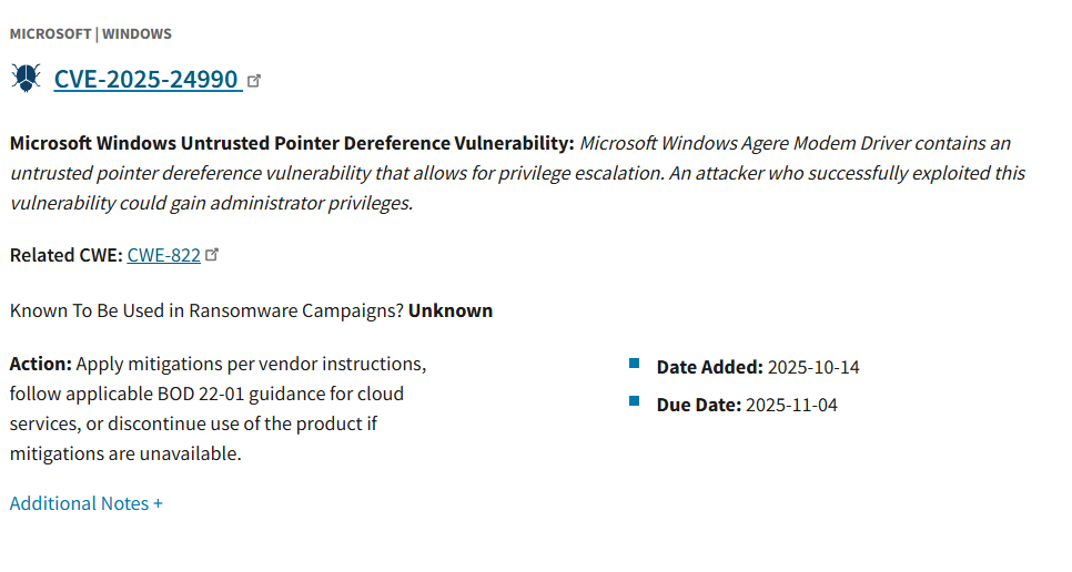 This driver is the focus of the vulnerability being tracked as CVE-2025-24990 and carries a CVSS score of 7.8 High