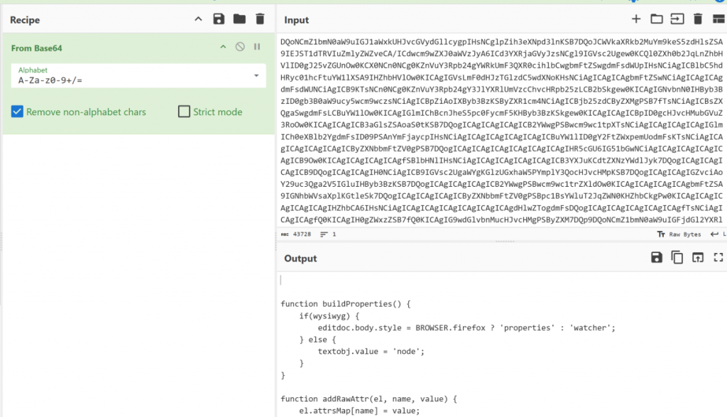 Once activated, the malware fetches content from a remote server, extracts server-supplied data stored as Base64-encoded keys, and executes the decoded content, enabling ongoing payload updates and extended control.