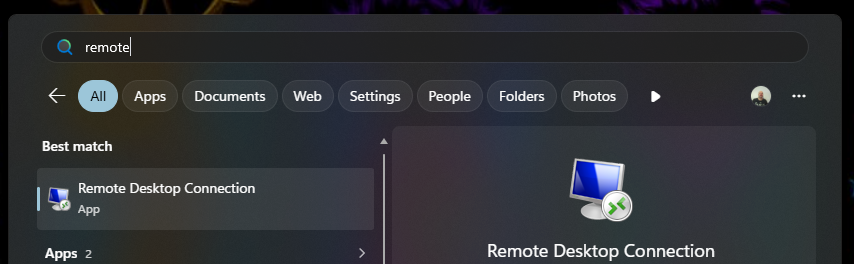 To create an RDP session to a remote server, on the client device, click the Windows start button and type Remote Desktop, this will allow you to launch the remote desktop application